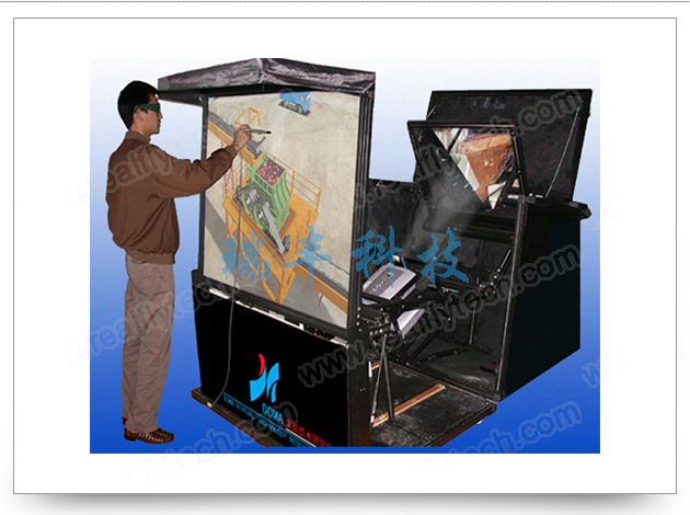 本系统为国内第一套具有自主知识产权的eDESK立体显示系统,采用基于被动投影立体显示技术,使观察者获得较强的沉浸感。观察者可进入破碎机内部进行细节观察。同时系统具有良好的人机交互性。场景浏览控制方式可选择鼠标、6D跟踪器两种方式,并支持扩展加入数据手套/操纵杆等,操作方便、自然,系统可根据使用人员的控制信号,从任意角度实时观察、漫游场景。系统采用基于PC和非立体投影器的逼真立体显示系统,成本低廉,易于维护与升级,并且配备eDESK演示系统的底层支持软件。